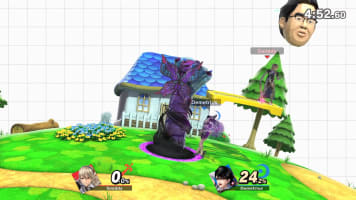 In Smash Bros., Dr. Kawashima’s polygonal face (which also appears in Brain Age) floats in the background, tossing number bubbles about the stage. If the numbers collide and equal 10, they will cause a huge explosion. Fighters can attack the number bubbles to alter their direction.