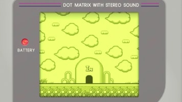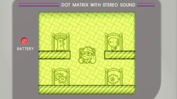 This stage features a grey Game Boy with a green monochrome screen that scrolls through the world of Kirby’s Dream Land. It begins first with the Game Boy's opening screen, then starts going through two parts of Green Greens, and then in King Dedede's castle before transitioning to outside of it, and ends in Dedede's boss room prior to looping once more.